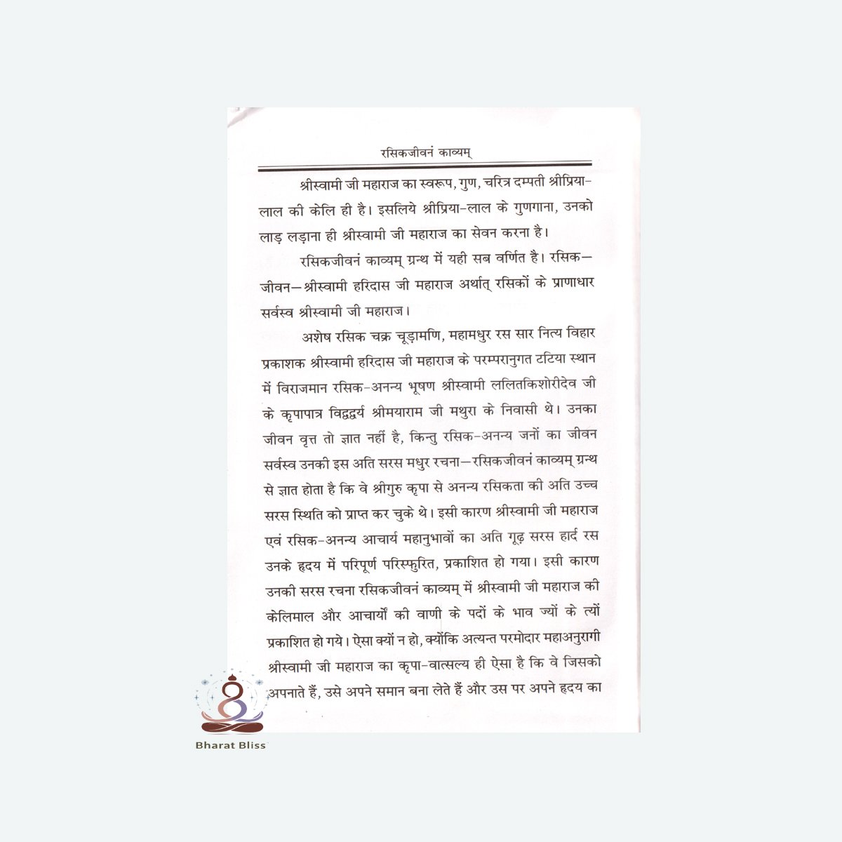 “Rasik Jeevan Kavyam” is a sacred devotional scripture of the Radhavallabh Sampradaya, composed by Shri Hit Harivansh Mahaprabhu, one of the greatest saints and poets devoted to Shri Radha-Krishna.